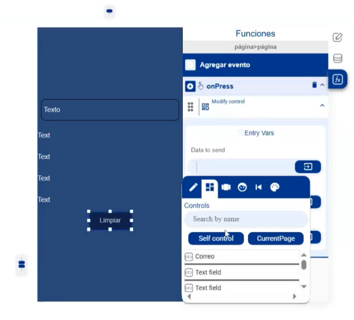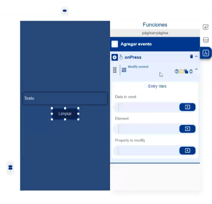 Se utiliza una acción llamada Modify Control.